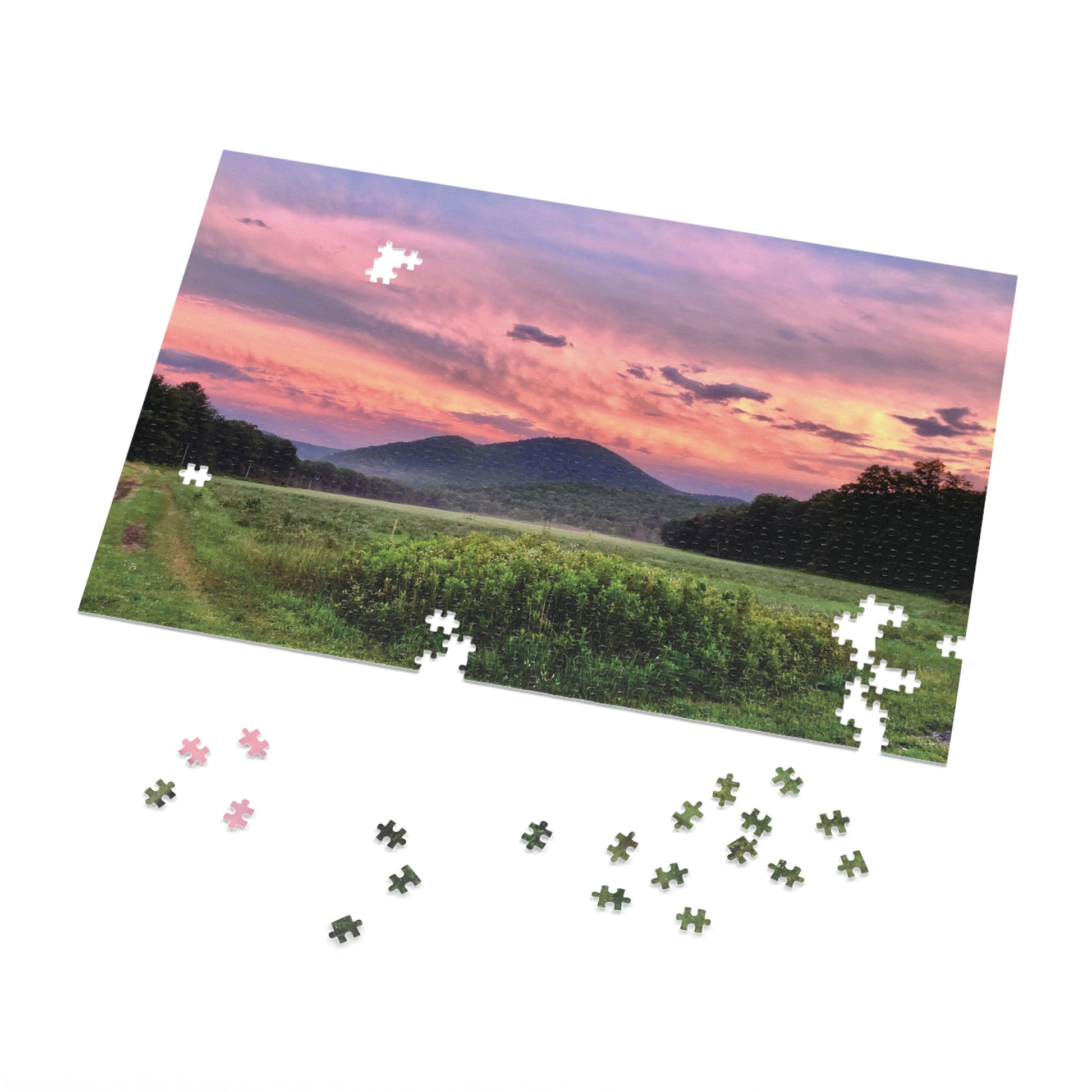 Immerse yourself in the relaxing world of jigsaw puzzles with this vibrant and engaging puzzle set. A unique puzzle of an original Kind River Studio image of a field in the Hilltowns of Massachusetts. Ideal for cozy nights in or family gatherings, this puzzle encourages creativity and collaboration. Designed with vivid colors, it's perfect for all puzzle enthusiasts (older children and adults), looking to unwind and enjoy some quality time together or quiet time solo. It's also a great screen-free activity! Perfect as a thoughtful gift for birthdays, holidays, or special occasions, this product appeals to individuals, families, friends, and puzzle enthusiasts alike. Create lasting memories as you piece together stunning imagery, bringing joy and a sense of accomplishment to every solver.