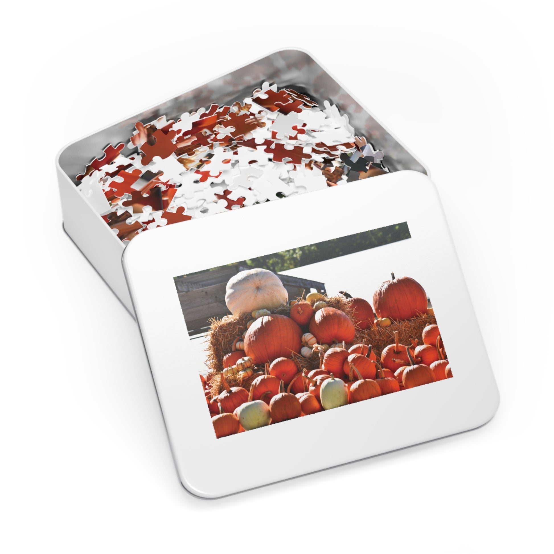Autumn Farm Pumpkin Pile Jigsaw Puzzle with Tin, Cozy Family Game, Nature Lovers Gift, Fall Decor, Puzzle