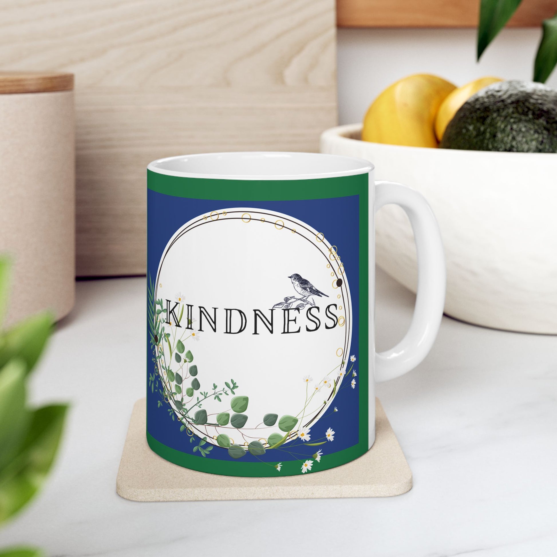 A simplistic, calming, serene, smooth white ceramic mug available in two sizes designed to be a soothing reminder to the at kindness is a superpower, a strength, and an essential. This mug combines functionality with pleasing aesthetics, featuring vibrant colors and a glossy finish that beautifully showcase the design. Whether you're enjoying your morning coffee or a cozy evening tea, this mug brings a sense of warmth and kindness to your routine. It's perfect for anyone who appreciates artful objects in their kitchen or office, making it a thoughtful gift for friends, family, or even yourself. We must remember that kindness matters. Let this mug speak to you. Or, let it speak for you when you gift it to a loved one that treasures their quiet time, or as a thoughtful gift for a teacher, coach, or coworker who is in go-go-go season. Celebrate life's moments, whether it’s a birthday, holiday gathering, or a quiet evening at home, with a mug that speaks to your personality and style. Its durable design ensures it will be a cherished part of your go-to mugs for years to come.