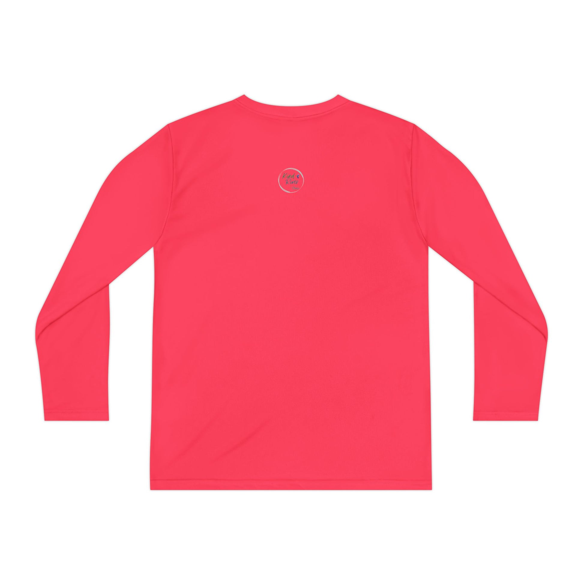 Introducing the Youth Long Sleeve Sport-Tek Competitor Tee, the perfect blend of comfort and style for active kids. Made from lightweight, moisture-wicking polyester, this tee ensures that your young athlete stays cool and dry during school, sports, workouts, or casual outings. The vibrant, cheerful design inspires positivity and happiness, making it an ideal choice for young children learning how to ride horses and gain self-confidence. Whether they're hitting the field, hanging out with friends, or joining family celebrations, this tee is a versatile addition to any young person's wardrobe. Perfect for school or activity sessions, this top will quickly become a favorite among kids and parents alike!