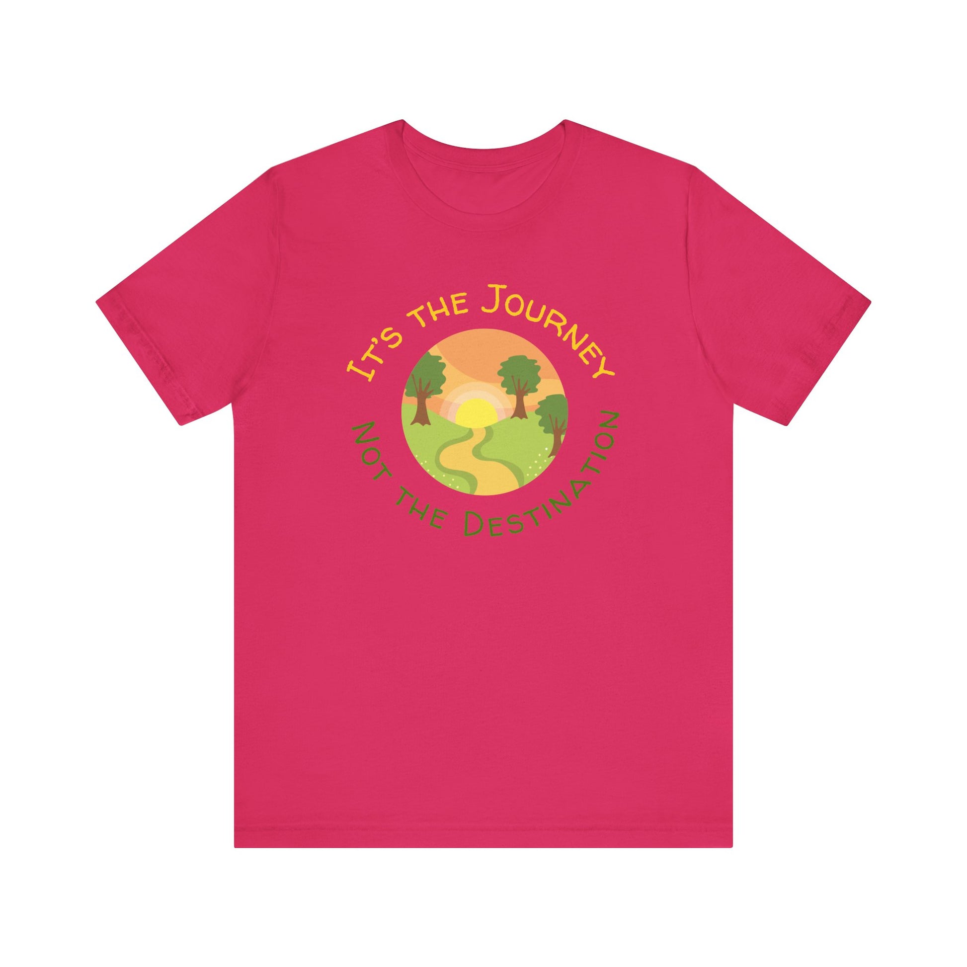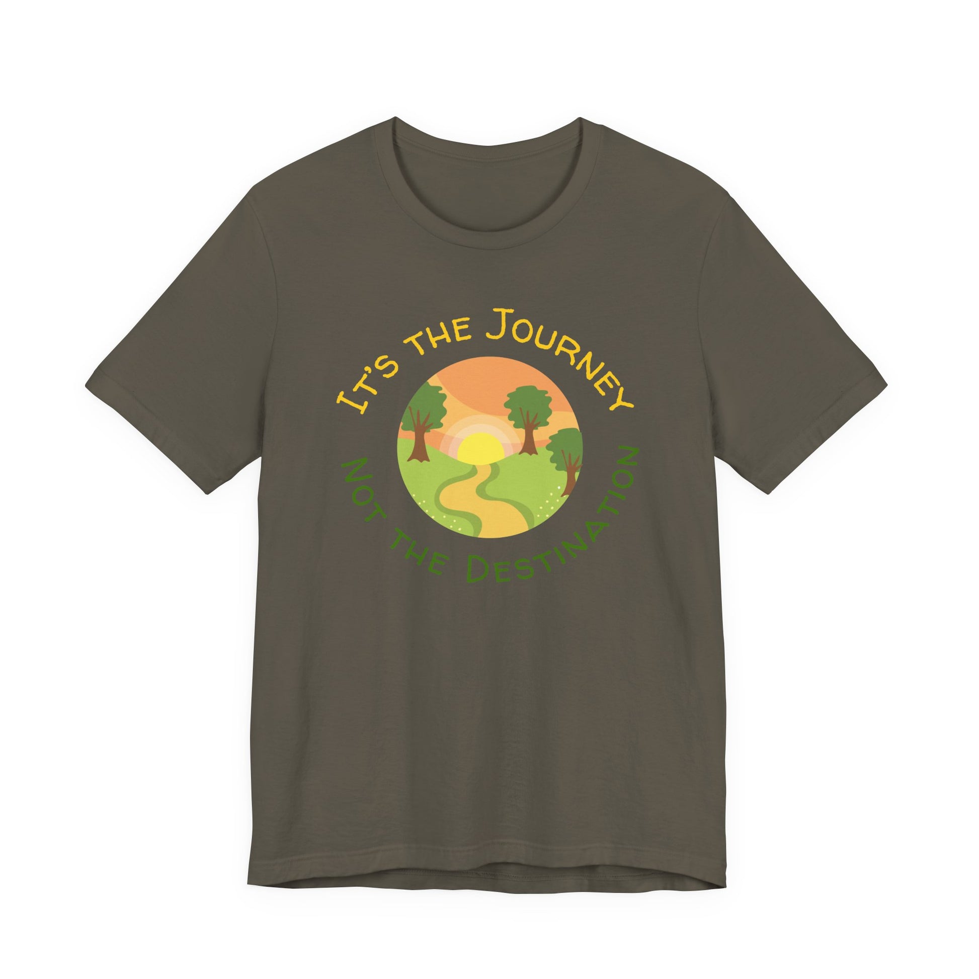 Embrace your journey with this stylish Bella+Canvas Unisex Jersey Short Sleeve Tee. Graphic on front only. Featuring a serene nature-inspired design that focuses on the journey and not the destination. It captures the essence of adventure and is perfect for both outdoor excursions and relaxed gatherings. Its breathable, lightweight fabric ensures softness and comfort whether you're hiking, lounging at home, running errands, or meeting up with friends. This tee resonates with everyone: adventurers, wanderers, nature enthusiasts, those chasing their dreams, or anyone who appreciates the beauty in life's journey. If you focus only on the destination, you'll miss the journey and all that is in between. It can also be a thoughtful gift for a loved one or someone marking a milestone. Wear it alone on warmer days; layer it over a long sleeve tee or under a cardi on cooler days. It's a versatile staple tee for your closet and the classic fit makes it a great addition to any wardrobe!