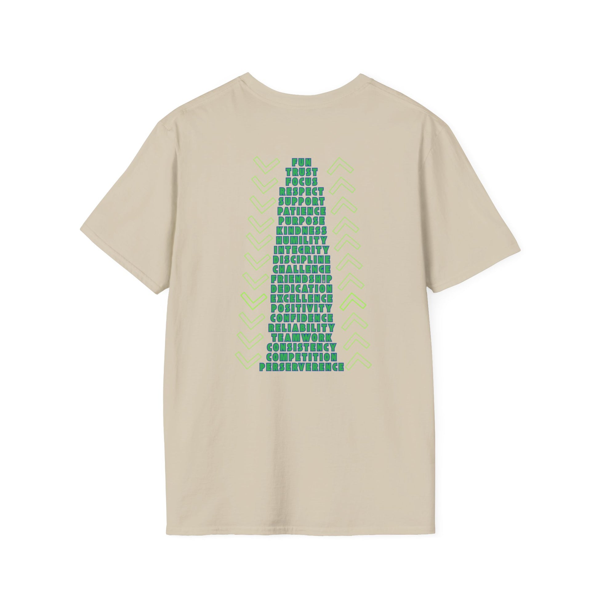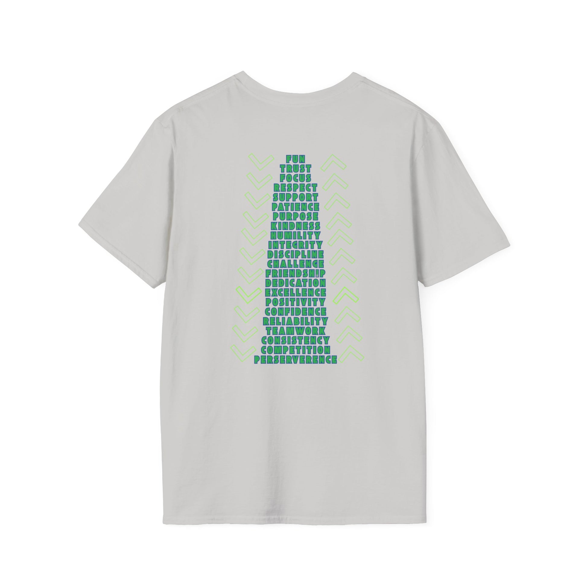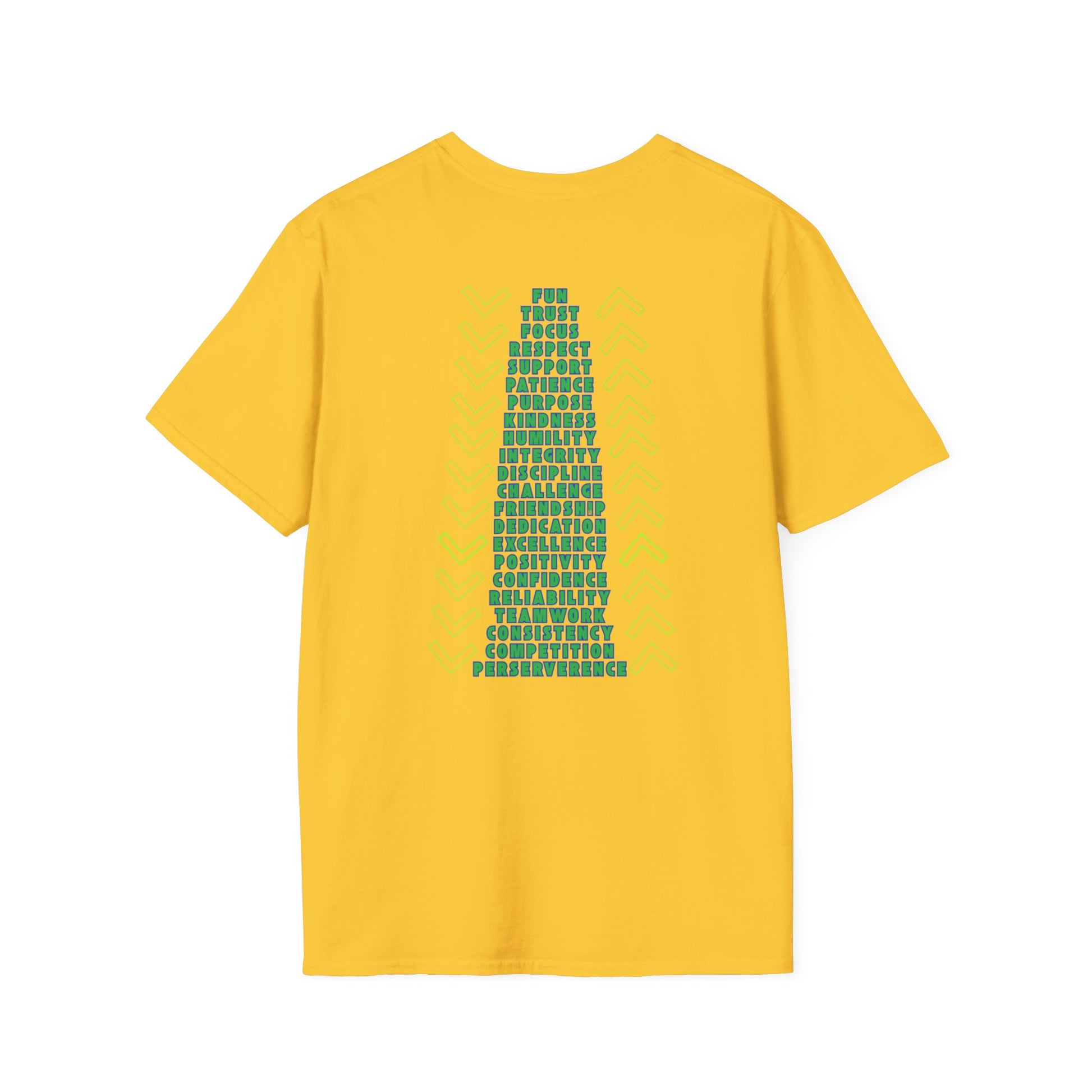 This is a versatile Gildan Unisex Softstyle tee featuring a vibrant design with various sports highlighted on the front and related power words listed on the back. This tee is perfect for active lifestyles or casual wearers. The feel-good fabric makes it ideal for year-round comfort, whether you're cheering on your favorite team or enjoying a day out with friends. Great for sports events, casual gatherings, or simply lounging at home, this tee resonates with all ages and can also be a fantastic gift for birthdays or other celebrations! The various sports on the front (basketball, baseball, softball, soccer, rugby lacrosse, tennis, volleyball, bowling, hockey, billiards, football, golf, etc.) give way to the list of power play skills athletes gain on the back of the tee supporting why sports can be a great outlet for people of all ages! Made with ethically sourced materials, it embodies sustainability without compromising on style and comfort.