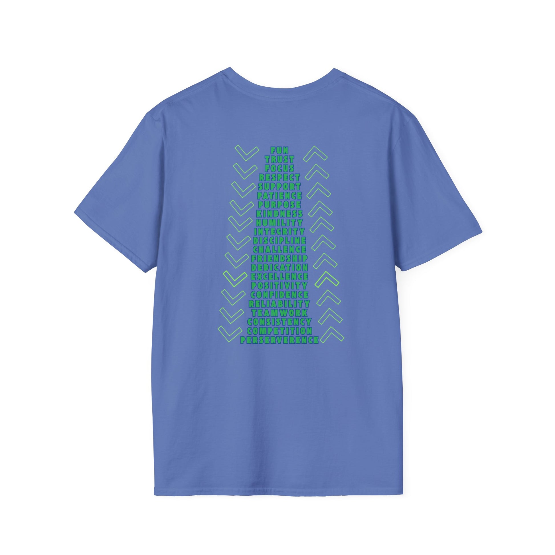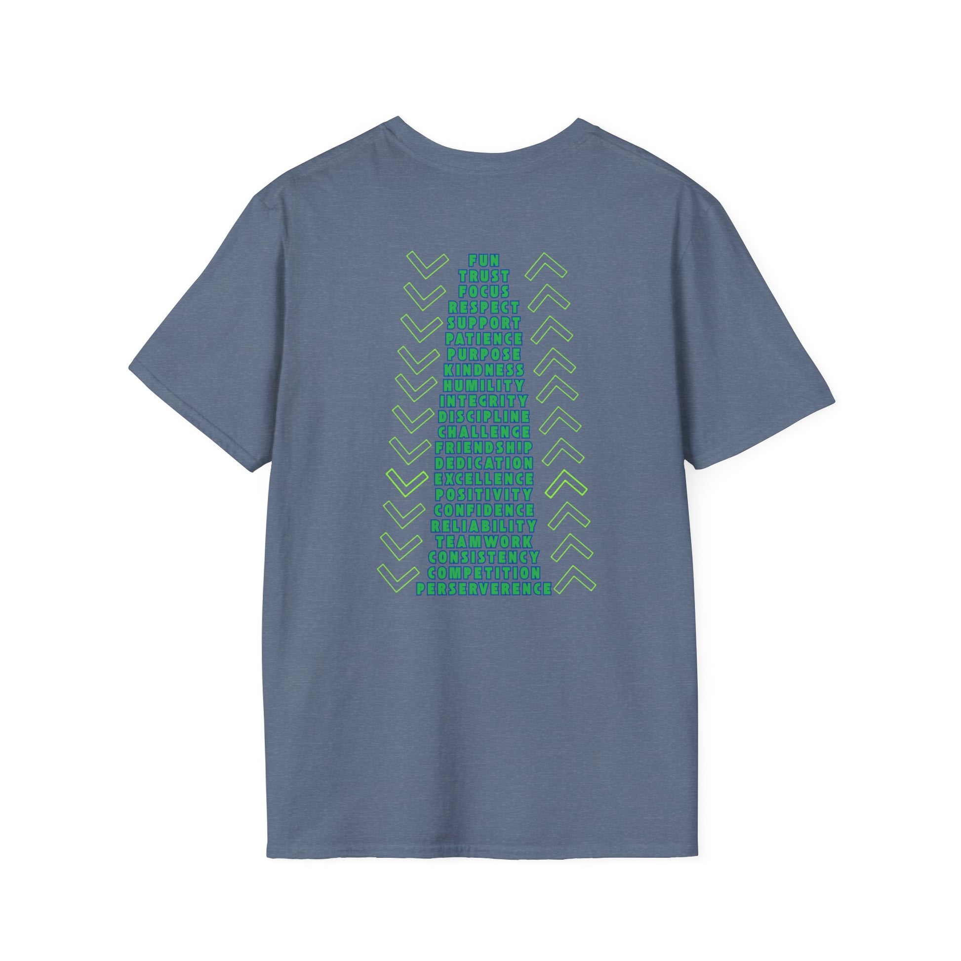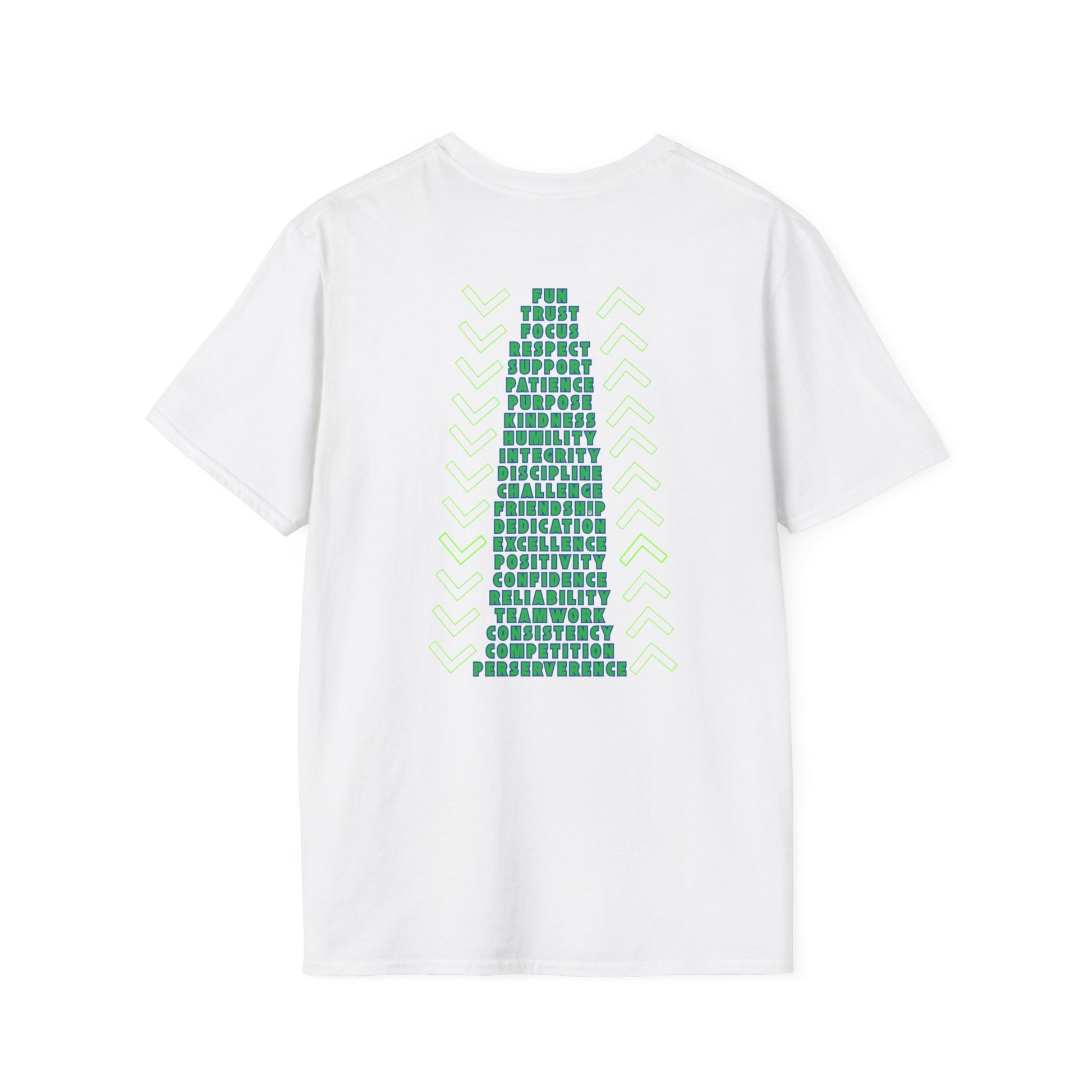 This is a versatile Gildan Unisex Softstyle tee featuring a vibrant design with various sports highlighted on the front and related power words listed on the back. This tee is perfect for active lifestyles or casual wearers. The feel-good fabric makes it ideal for year-round comfort, whether you're cheering on your favorite team or enjoying a day out with friends. Great for sports events, casual gatherings, or simply lounging at home, this tee resonates with all ages and can also be a fantastic gift for birthdays or other celebrations! The various sports on the front (basketball, baseball, softball, soccer, rugby lacrosse, tennis, volleyball, bowling, hockey, billiards, football, golf, etc.) give way to the list of power play skills athletes gain on the back of the tee supporting why sports can be a great outlet for people of all ages! Made with ethically sourced materials, it embodies sustainability without compromising on style and comfort.